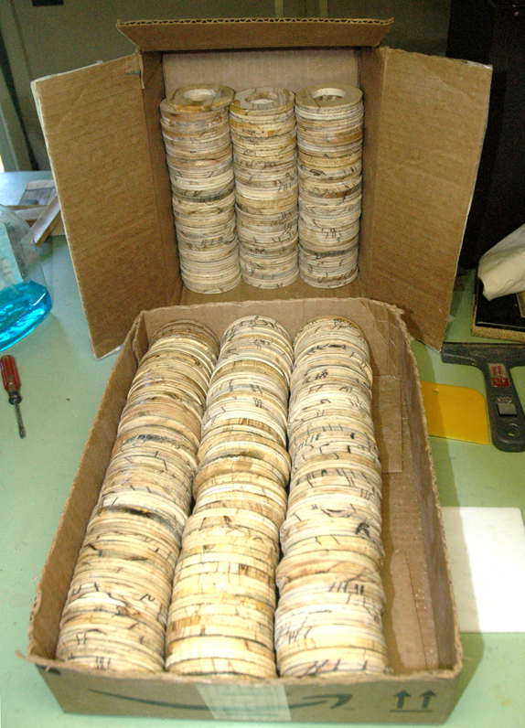 Ring plugs are deburred, smoothed somewhat, and inspected. |